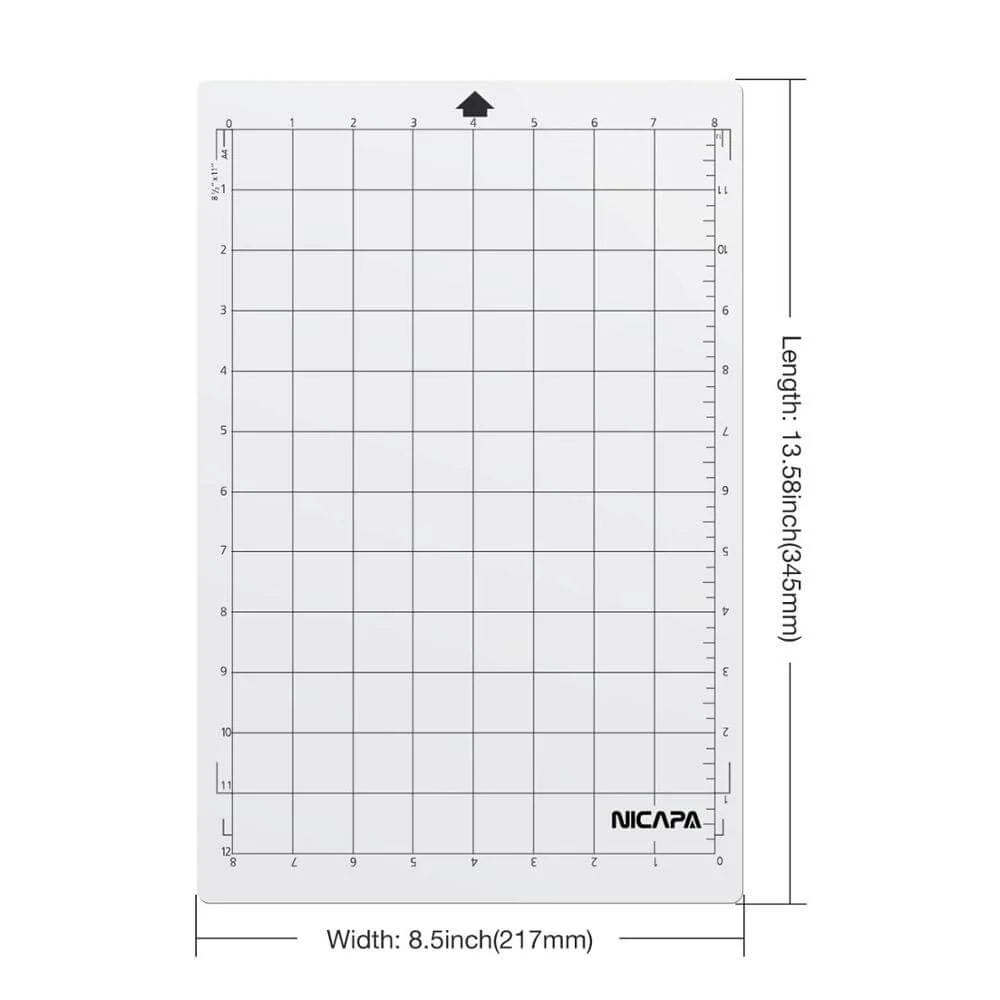 La alfombrilla de corte estándar Nicapa para Portait tiene la pegajosidad ideal es perfecta para una amplia gama de materiales de peso medio, incluyendo: cartulina, cartulina con purpurina, papel patrón, papel perla, papel de impresora, vinilo,